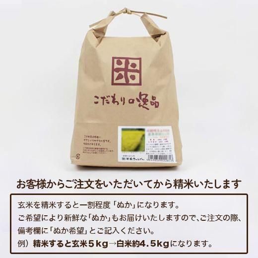 ※お客様からご注文をいただいてから精米いたします。玄米を精米すると一割程度「ぬか」になります。ご希望により新鮮な「ぬか」もお届けいたしますので、ご注文の際、備考欄に「ぬか希望」とご記入ください。例)5kgの玄米を精米すると約4.5kgの白米となります。